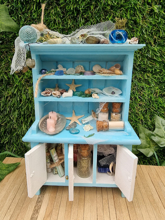 Dollhouse miniature dresser 1:12th scale nautical theme curio cabinet for miniature beach hut