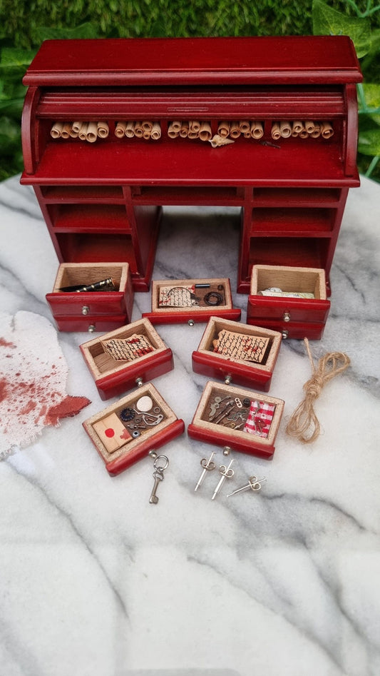 Miniature Bone Collector Roll top bureau 1:12 scale dollshouse miniature roll top desk with drawers, dark secrets and horrors