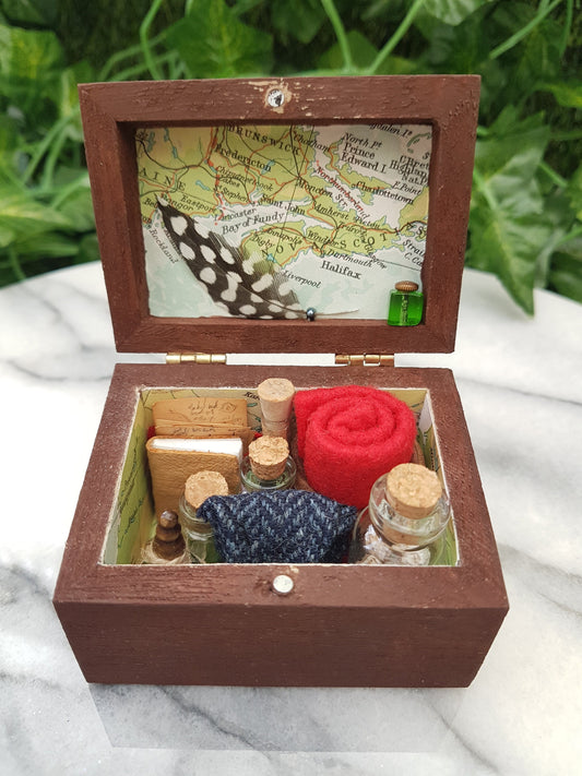 Miniatures for dolls houses, room boxes or dioramas. These miniatures are made to 1:12 scale, utilising repurposed and reclaimed materials.