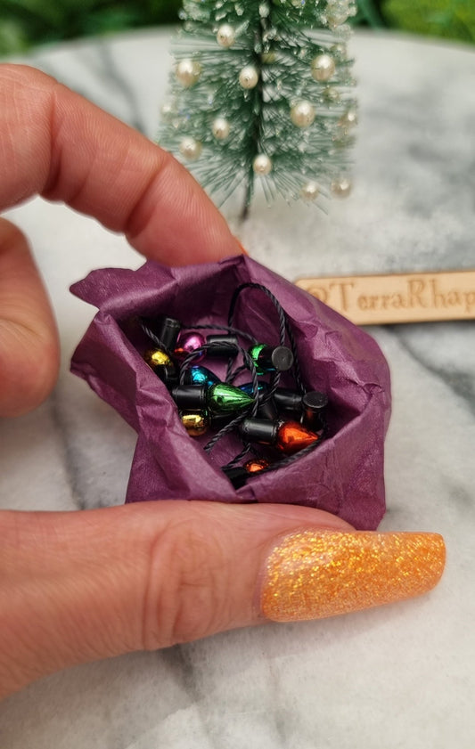 Box of Christmas lights 1:12 scale dollhouse miniature Christmas decor fairy lights coloured lights Xmas lights