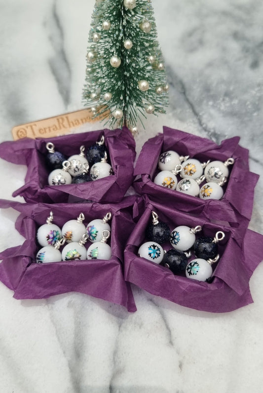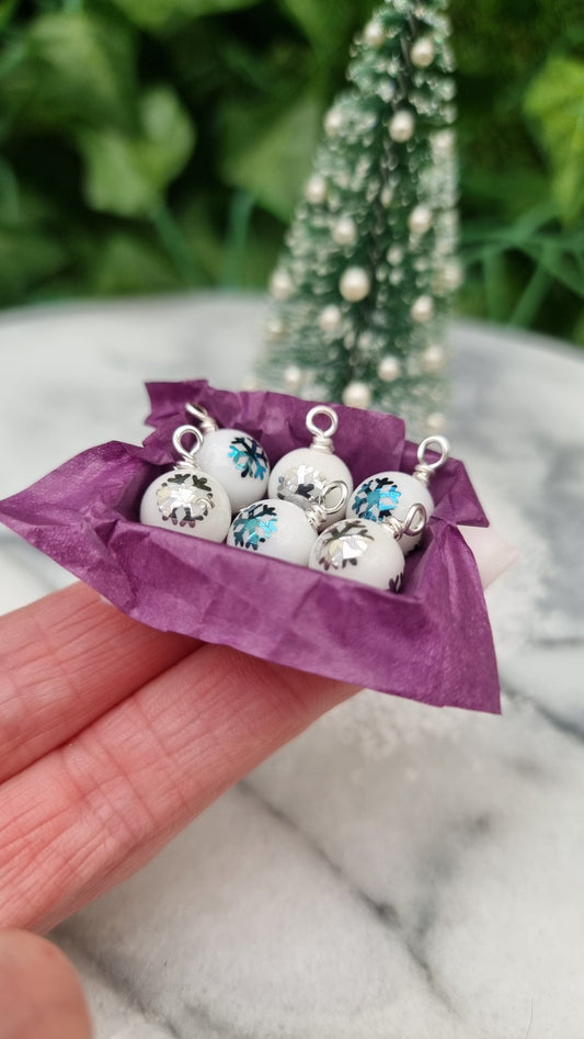 Set of 6 Christmas baubles 1:12 scale dollhouse Christmas decorations xmas- festive snowflake glass baubles in box miniature