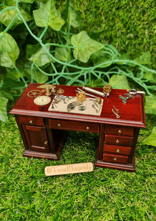 Miniature clock makers bench 1:12 scale handmade dollhouse miniature engineers work bench