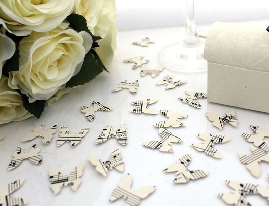 Paper butterfly wedding confetti- 200 vintage sheet music punched butterflies- biodegradable table confetti- wedding table decor