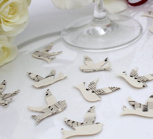Paper swallow bird wedding confetti- 200 ivory vintage sheet music confetti punched wedding decor confetti biodegradable