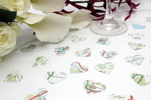 Wedding confetti map paper hearts- 200 vintage map heart confetti- map confetti- biodegradable wedding decor